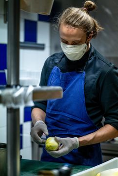 During the period of confinement and the COVID-19 health crisis, at the initiative of the AP-HP, Guillaume Gomez, chef of the Elysée kitchens and Stéphane Méjanès, culinary journalist, the chefs cooked for the caregivers. The operation is coordinated on a voluntary basis by the company TipToque, which specializes in delivering meals to businesses. The raw products are donated by Rungis Market, as well as the wholesalers Avigros, METRO and Transgourmet.Meal preparation in the restaurant La Scène Thélème, Paris.
