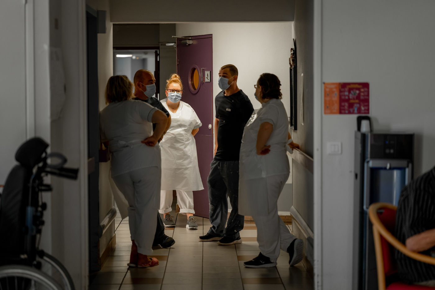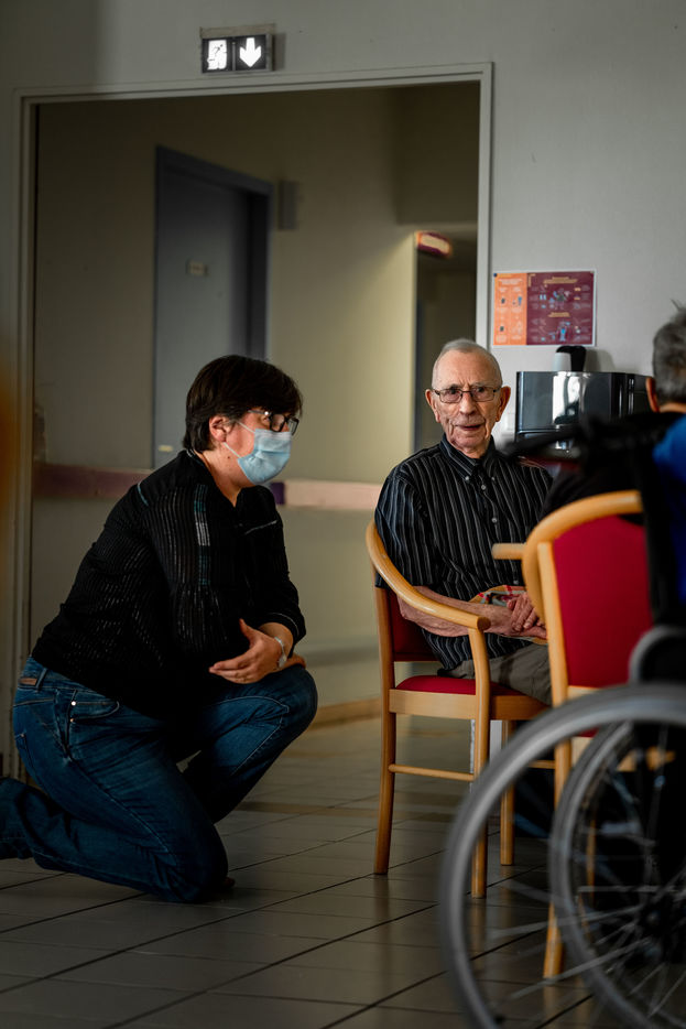 Instants de vie saisis au gré des couloirs de l'EHPAD d'Yvoy le Marron, La Résidence du Bourg, dirigé par Nathalie Sassus, aux côtés d'un personnel soignant d'une grande bienveillance et de résidents pour lesquels le temps se vit sur un fil.