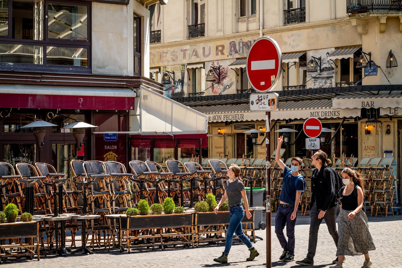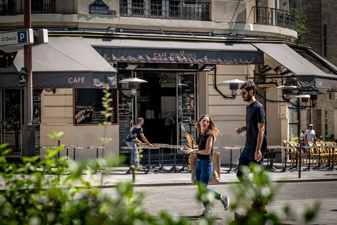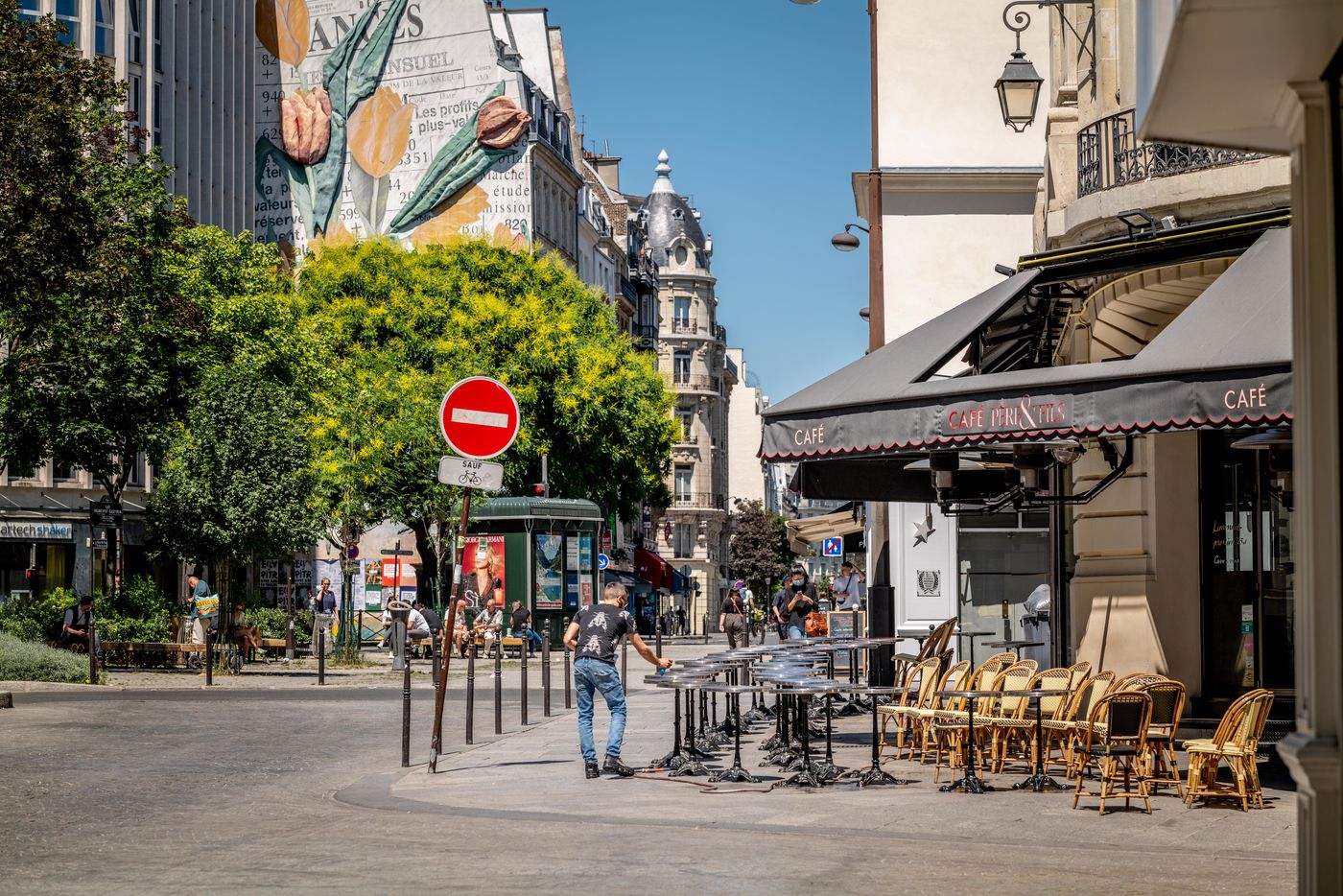Photos of illustrations of Paris at the time of leaving lockdown. Reopening, preparation of the terraces...