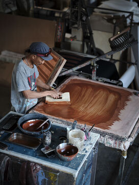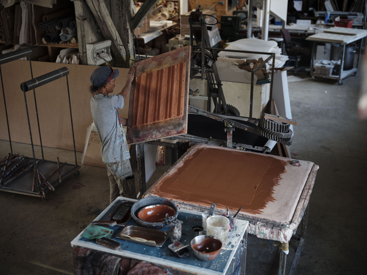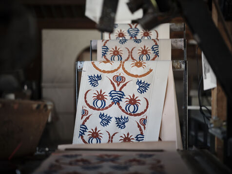 Discovering block printing on the premises of Atelier d'Offard, in Tours, and the manufacture of stoneboard.