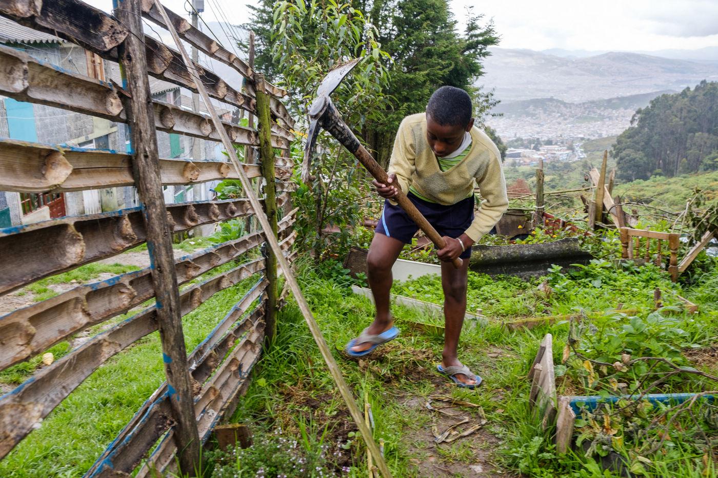 Ici, une famille qui emmène ses vaches paître sur un bout de terrain militaire plus ou moins moins abandonné au coeur du quartier de San Cristobal. Là des habitants du barrio de Santa Rosa qui cultivent leur petite parcelle de jardin, arrachée entre le béton de leur habitation et la friche de la montagne avec le soutien et l'expertise d'une association française. Là-bas, une AMAP qui livre des paniers de fruits et légumes locaux et bio en s'appuyant sur un petit réseau de producteurs.