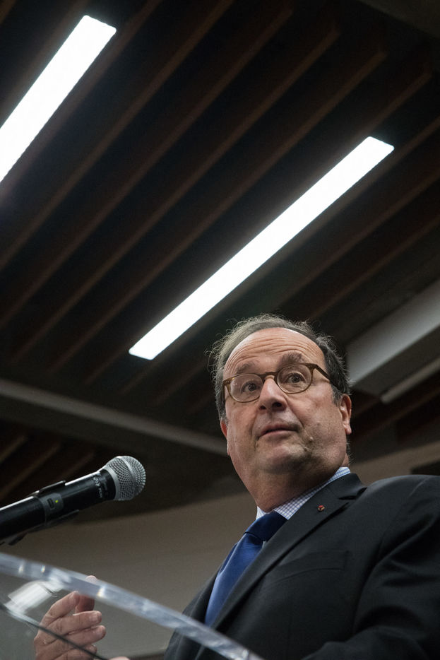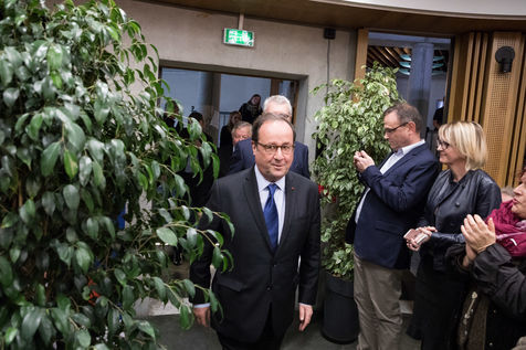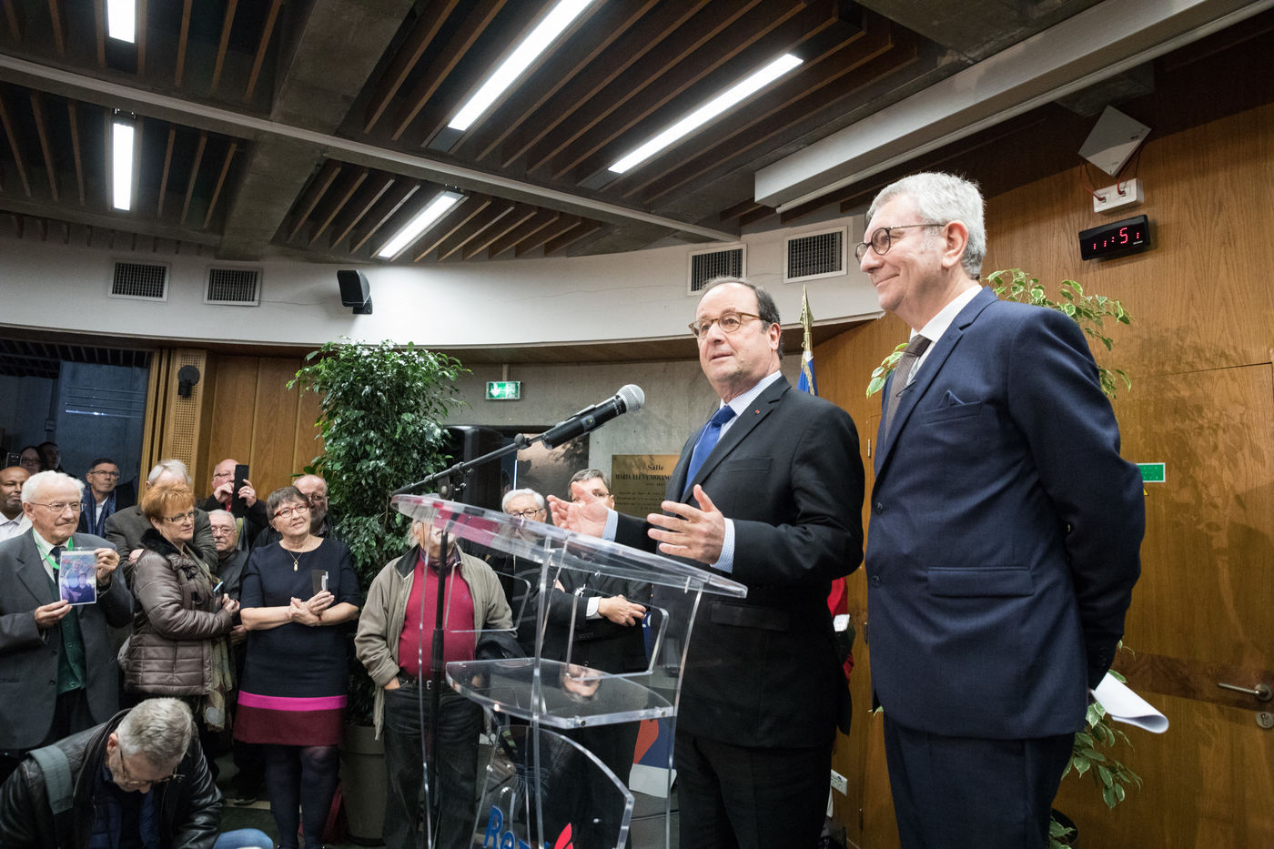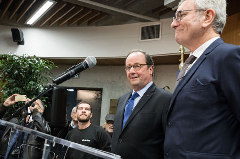 Visit of the former president of the french Republic François Hollande in Rezé to attribute the medal of "Chevalier des Arts et des Lettres" to the mayor Gérard Allard. Rezé, France - November 28 2018