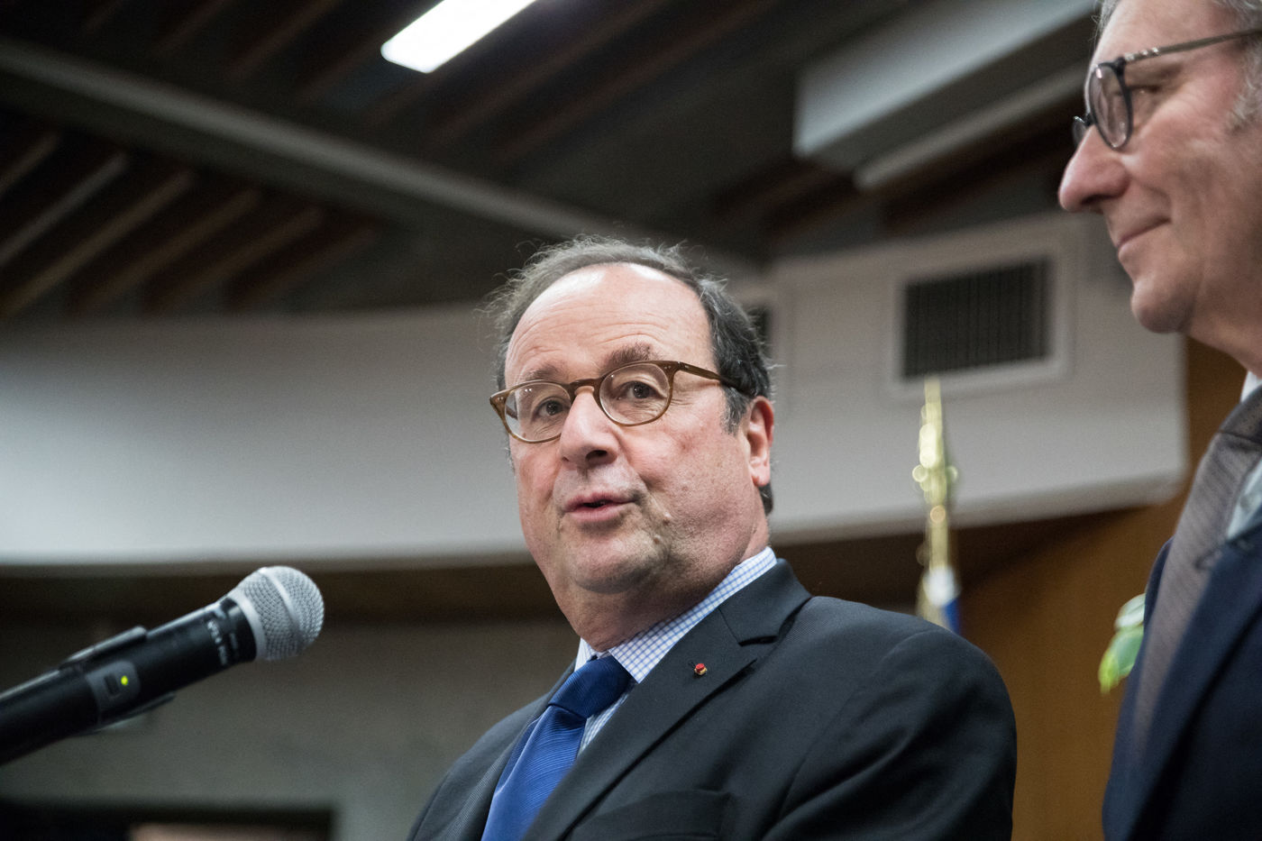 Visite de l'ex président de la République François Hollande à Rezé pour remettre la médaille de Chevalier des Arts et des Lettres au maire Gérard Allard.