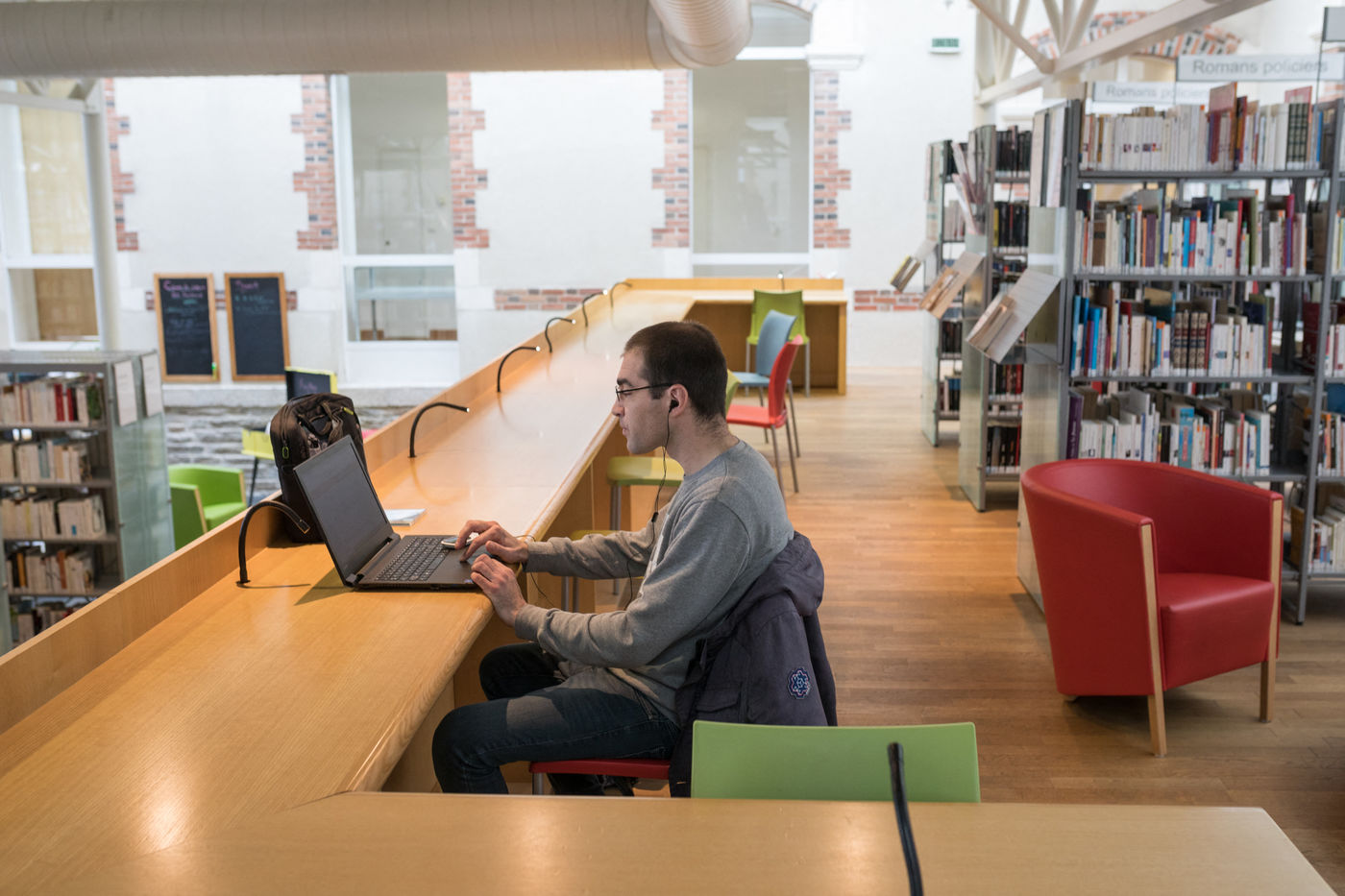 Images d'illustration dans une bibliothèque.