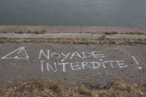 Illustration on the Wilson wharf, close to the place where Steve disappeared. Steve Maia Canico, 24 years old disappeared during the night of the "fete de la musique" as policemen charged people who were partying on the warf and 14 people fell into the Loire river. Quai Wilson, Nantes, France - 27 juin 2019