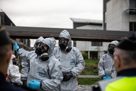 Civil security exercise implying a chemical attack in a high school with the participation of around 350 police officers, firemen and first aiders.