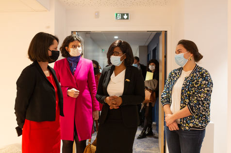Elisabeth Moreno, Minister in charge of equality between women and men, diversity and equal opportunities visits the association Citad elles with the mayor of Nantes, Johanna Rolland. Citadelles is a place of reception, accompaniment and orientation for women victims of violence. Nantes, France - January 14, 2021.