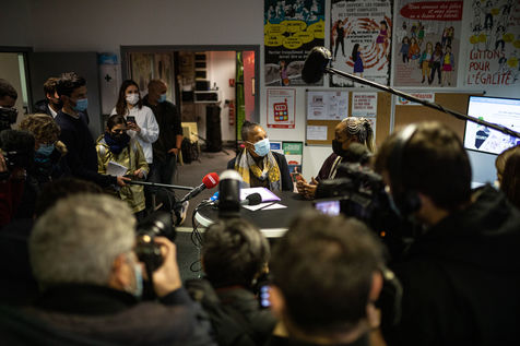 Christiane Taubira, former Minister of Justice and possible candidate for the 2022 french presidential election, visits Nantes to meet with members of resonantes. France, Nantes, 2022-01-10. Photos by Jeremie Lusseau / Hans Lucas