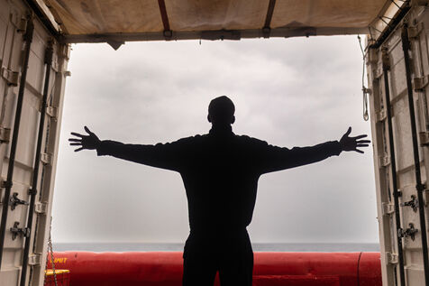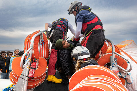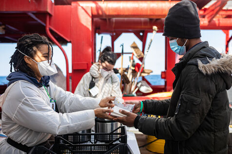J'ai eu l'occasion de couvrir la onzième rotation en Méditerranée Centrale de l'Ocean Viking. Elle s'est déroulée au mois de mars 2021 et a donné lieu au sauvetage de 116 personnes, hommes, femmes et enfants fuyant la Libye, qui ont pu être débarquées dans le port d'Augusta en Sicile.
