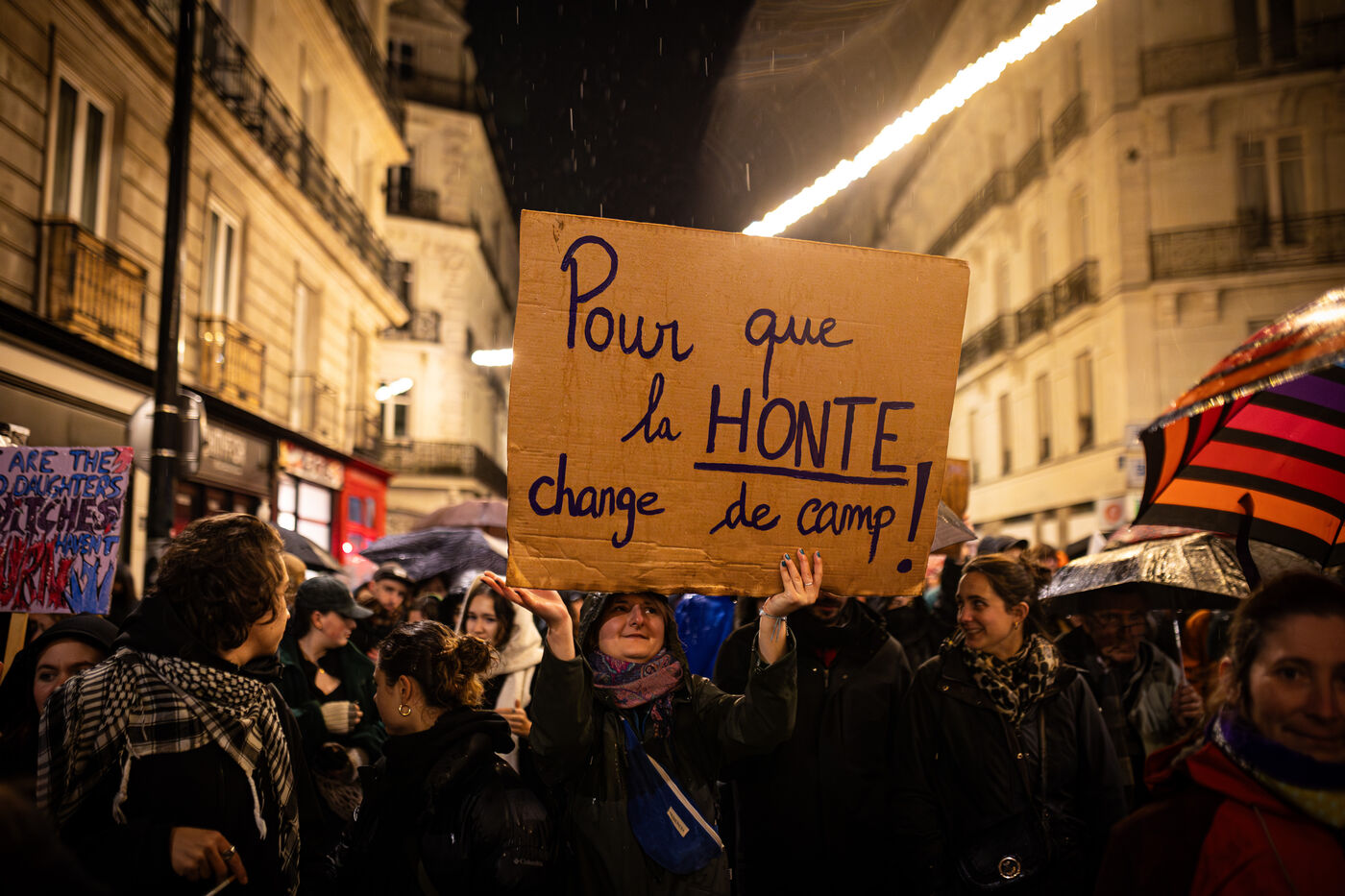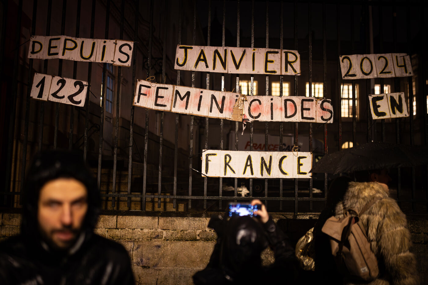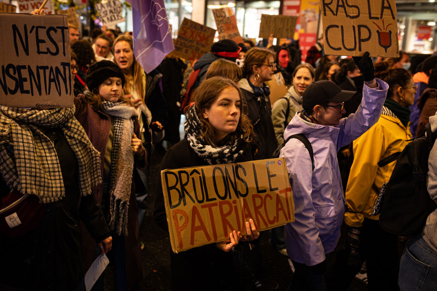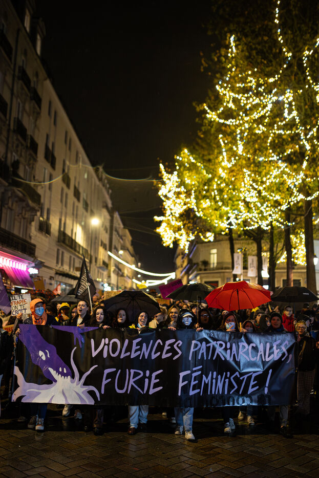 Thousands of people marched through the rainy streets of Nantes on the International Day for the Elimination of Violence against Women to protest against sexist and sexual violence.