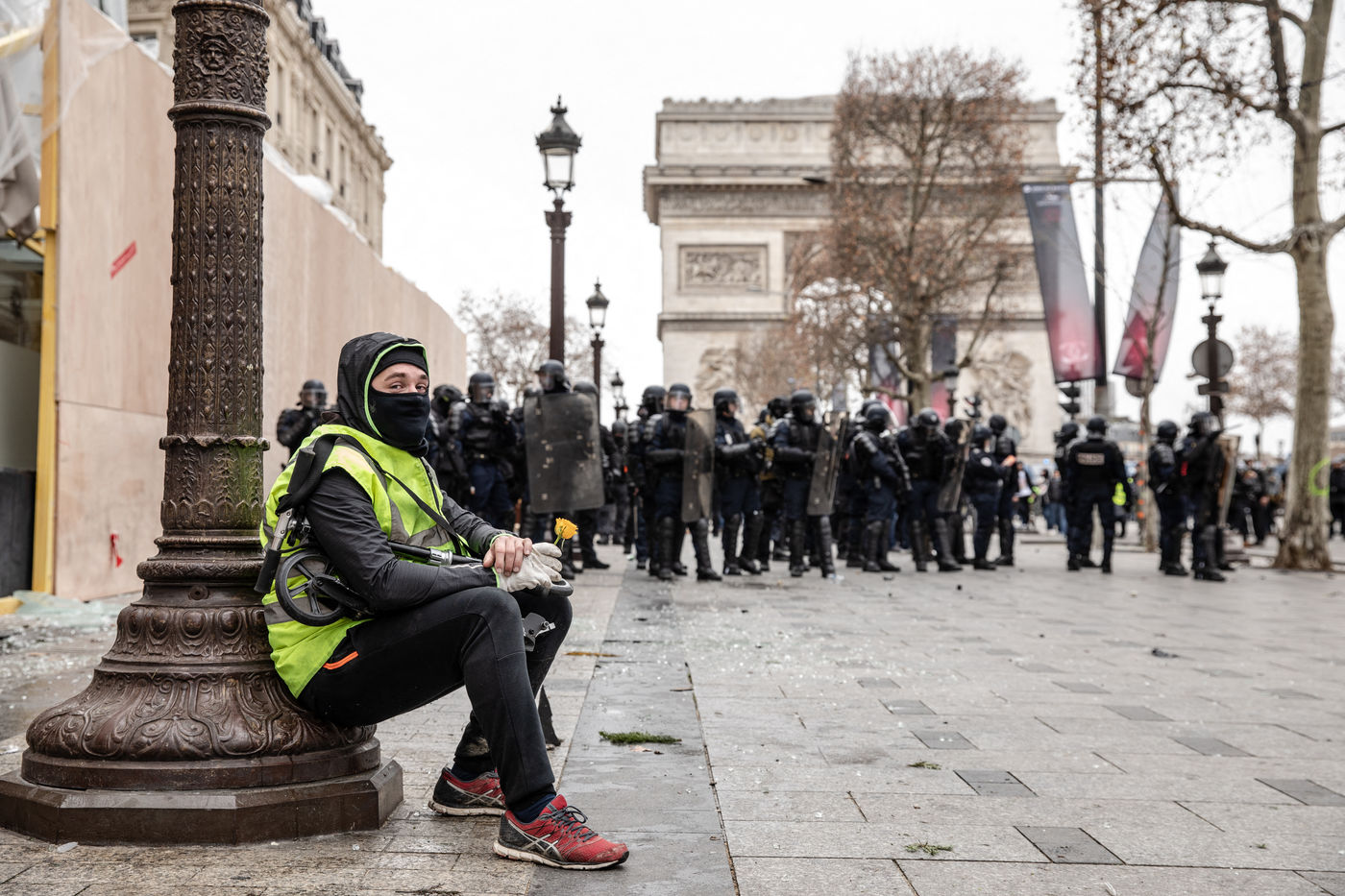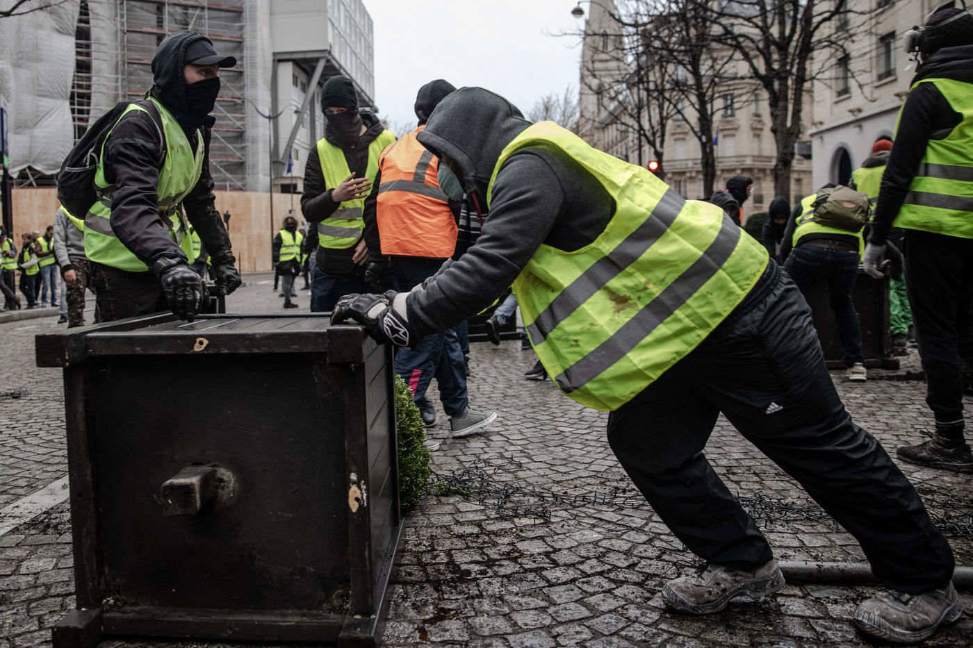 Act IV of the yellow vests in Paris, on 8 December 2018, was marked by an unprecedented mobilization of the police (8,000 members). About 10,000 yellow vests (excluding the "climate march" that took place on the same day) demonstrated in the capital. The Champs Elysées was one of the main gathering points. Clashes between the police and the yellow vests broke out in the early afternoon and continued until the evening.