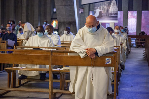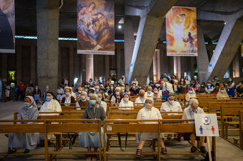 Assumption Mass in the underground Basilica of St Pius X of the Sanctuary of Lourdes chaied by Cardinal Pietro Parolin, Secretary of State of the Holy See. August 15, 2020.