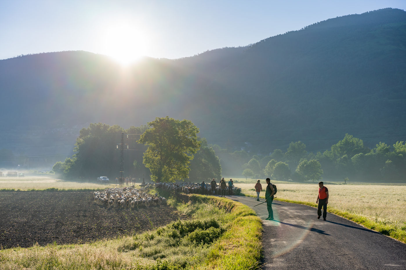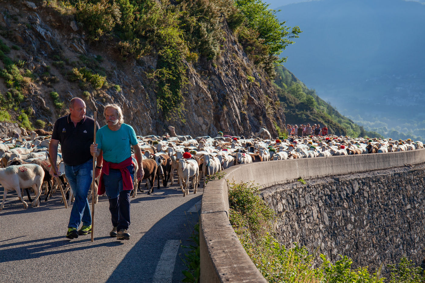 Transhumance de Soulan, summer pasture for 700 ewes above the village of Soulan in the Hautes Pyrenees.