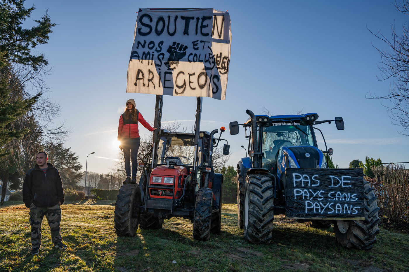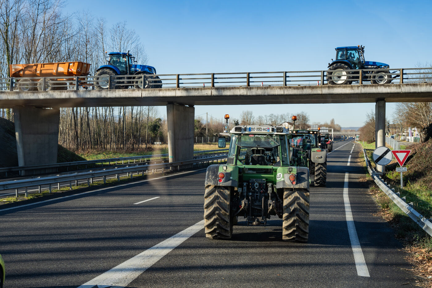 Farmers demonstration, 150 tractors on the A64 freeway between Tarbes Est and Tarbes Ouest.