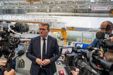 François DUROVRAY, Minister Delegate for Transport, in Toulouse. On the agenda: the assembly line for the Airbus A321 in the world's largest aeronautical production building, the Marguerite-de-Cattelan tunnel boring machine on metro line C, and aerial start-up Aura Aéro, which is aiming for the top with its carbon-free aircraft.