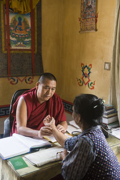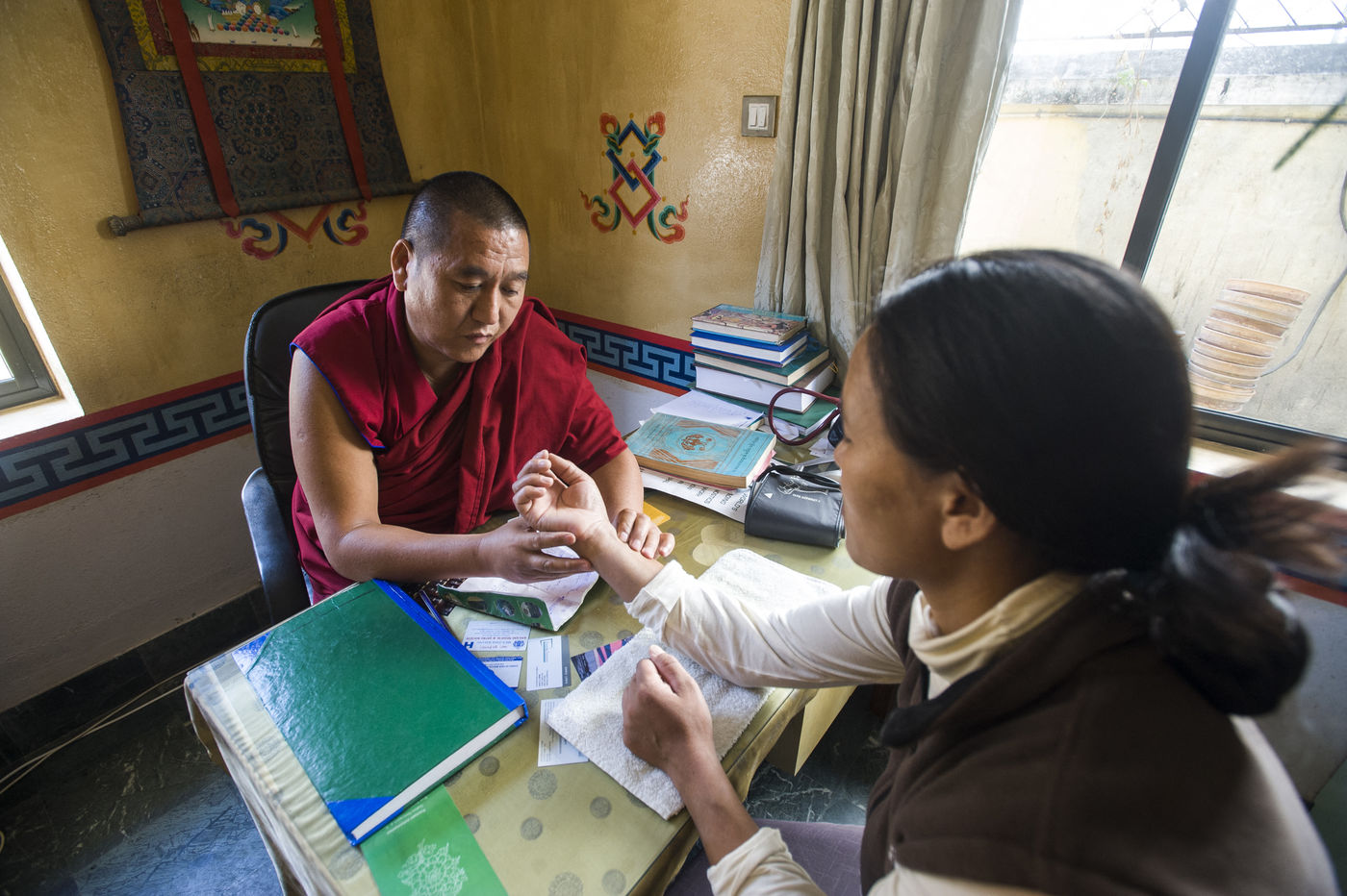 NEPAL, KATMANDOU. 01/03/2012. Tibetan medecin in Shechen clinic. Traditionnal medecin with pills made with plants. Photograph: JM DELAGE / HANS LUCAS