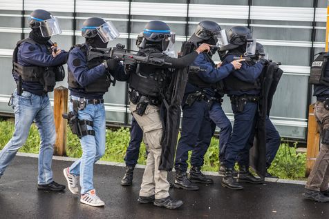 A hostage-taking is in progress. Thirty-eight people would be detained by armed terrorists ... An emergency device is immediately put in place: police forces, emergency services of Samu / Smur, surgeons, firefighters ... It is a exercise - life-size - of taking into charge of the victims after a terrorist attack. Damage Control has its origins in the US Navy. The goal, in case of an influx of victims in hemorrhagic shock, is to limit the bleeding to bring the patient to the hospital where he will be treated. It is necessary to practice short gestures, to be able to save as many patients as possible. The urgency is to stabilize them to evacuate them and they are then reoperated in the hours that follow. The first of the actions carried out during attacks and the influx of victims in mass, it is the operation of sorting. The speakers are indeed not numerous enough considering the number of victims. In the role of the victims, cadets of the Republic who were made up of visible wounds and trained to suffer, to shout ... as in real situation.