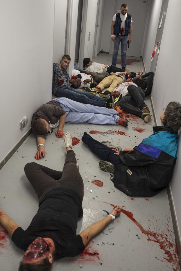 Damage control: Life-size simulation of an extreme emergency after a terorist attack.