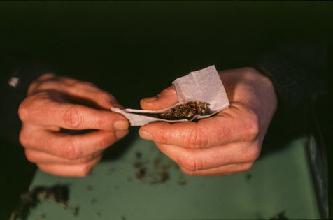 Illustration autour de la consommation de cannabis. Préparation d'un joint d'herbe.