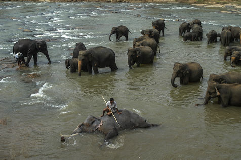 Created in 1975 by the government to protect injured or orphaned elephants, Pinnawala welcomes these pachyderms on probation. The orphanage is now installed in the village of Pinnawala, about fifty kilometers from Kandy. The majestic animals live on the edge of the park of 10 ha, in semi-freedom. At the end of the afternoon, they bathe and frolic in the nearby Maha Oya River. Trapped by farmers whose crops they ravage (authorities estimate that about 200 elephants are killed each year, mostly by farmers), poached for their ivory and flesh, or to steal babies, wild elephants pay a heavy price . Although in Sri Lanka, the elephant is revered by the mainly Buddhist population and where to kill an elephant is punishable by death, there is strangely little legal action ... Until recently, elephants coming from Pinnawala Orphanage were donated to Buddhist temples for parades during religious ceremonies. But this principle has been questioned by NGOs who advocate that elephants are no longer separated from their families. Due to deforestation, there are still about 6,000 wild elephants on the island today compared to 12,000 in the last century.