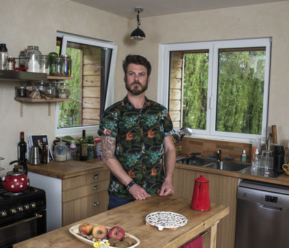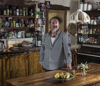 I photograph the musicians of Maine et Loire at home, in their kitchens. Funny place ... Universes. Music and cooking go hand in hand. That's my belief. Conviviality, recipes, compositions ... And if we look a little, there are many similarities, many terms are borrowed from the repertoire of music: drums, piano, mandolin, tuning fork, flute, bell, whip, rondeau, piston, scraper ... Instruments that accompany musicians and cooks! We could also mention pastries: Opera, Mozart, Polka or Melba peaches (named after an Australian singer). We also cut small vegetables in whistle, we enjoy a tournedos Rossini or mushrooms Trumpets of the dead ... Accompanied by fiddleheads ... And in music as in cooking, it's often a story of composition, harmony. Flavors and colors that will make the success of a recipe or a song, a piece of music.