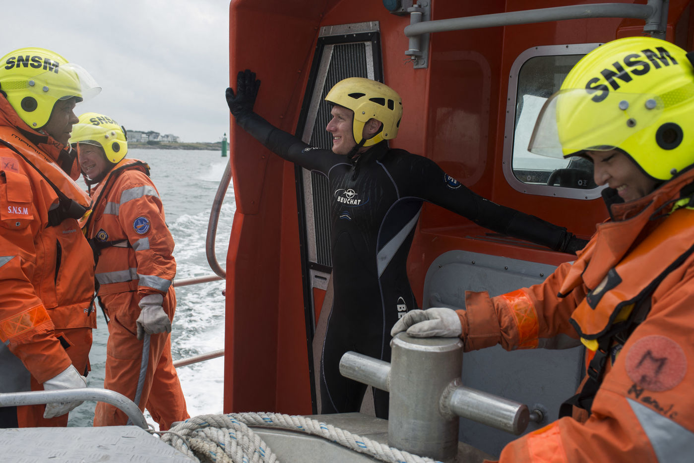 SNSM of Quiberon. The rescuers at sea from Quiberon in maneuver. On their boat, they go off for a rescue exercise.
