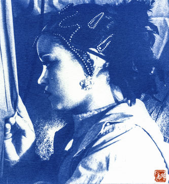 Le cirque est arrive en ville. Je suis alle a la rencontre des circassiens. Pendant une semaine, ils m ont accueilli au milieu des caravanes, pendant les repetitions et j ai assiste a de nombreuses representations. Ces images, je les ai reecrites en utilisant un procede photographique monochrome negatif ancien, le cyanotype. Gace aux UV (du soleil ou d une lampe), on obtient un tirage photographique bleu de Prusse, bleu cyan. Cette technique a ete mise au point en 1842 par le scientifique et astronome anglais John Frederick William Herschel.