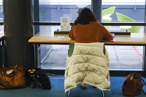 Etudiants travaillant dans la mediatheque universitaire .