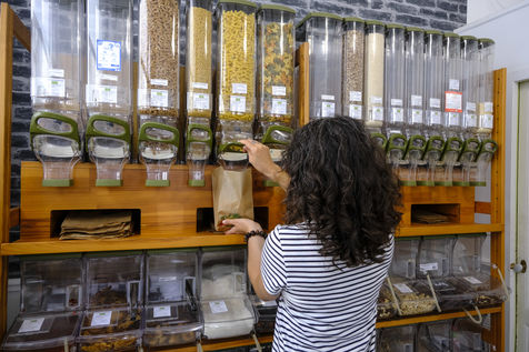 A shop selling organic products in bulk. Food, hygiene projects, cleaning products. The service is done either in bags or in jars that the customers bring. A way to fight against too much single-use packaging.