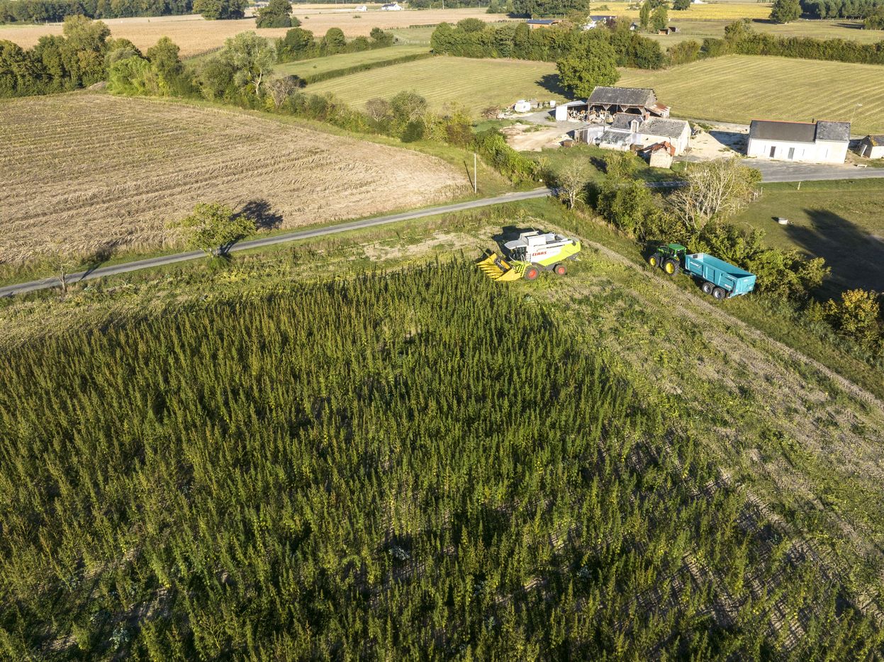 Harvest of the monoecious hemp Cannabis Sativa L. Here in Anjou, we grow a variety that has a very low THC content: less than 0.2%. It is therefore called industrial hemp because it is intended for the food industry, construction or clothing... Hemp has a powerful root system that reaches up to 2 metres into the ground. Thanks to its roots, hemp is very resistant and does not need watering or phytosanitary products. Hemp from Maine et Loire is harvested for its seeds.