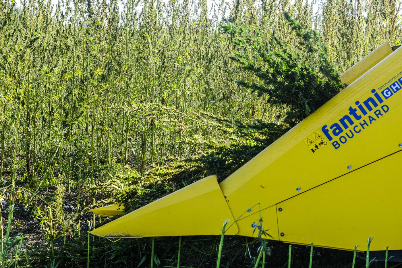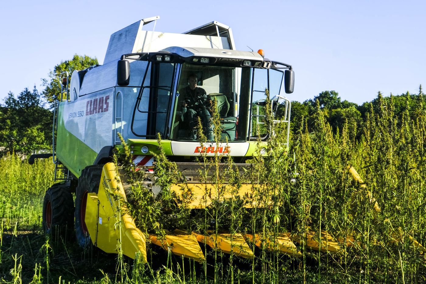 Moisson du chanvre monoïque Cannabis Sativa L. Ici, en Anjou, on cultive ici une variété qui a un taux très bas en THC : inférieur à 0,2%. On l?appelle donc du chanvre industriel car il est destiné à l?agroalimentaire, la construction ou l?habillement? Le chanvre a un système racinaire performant qui va se chercher jusqu?à 2 mètres dans le sol. Grâce à ses racines, le chanvre est très résistant et n?a pas besoin d?arrosage, ni de produits phytosanitaires. Le chanvre du Maine et Loire est recolte pour ses graines.
