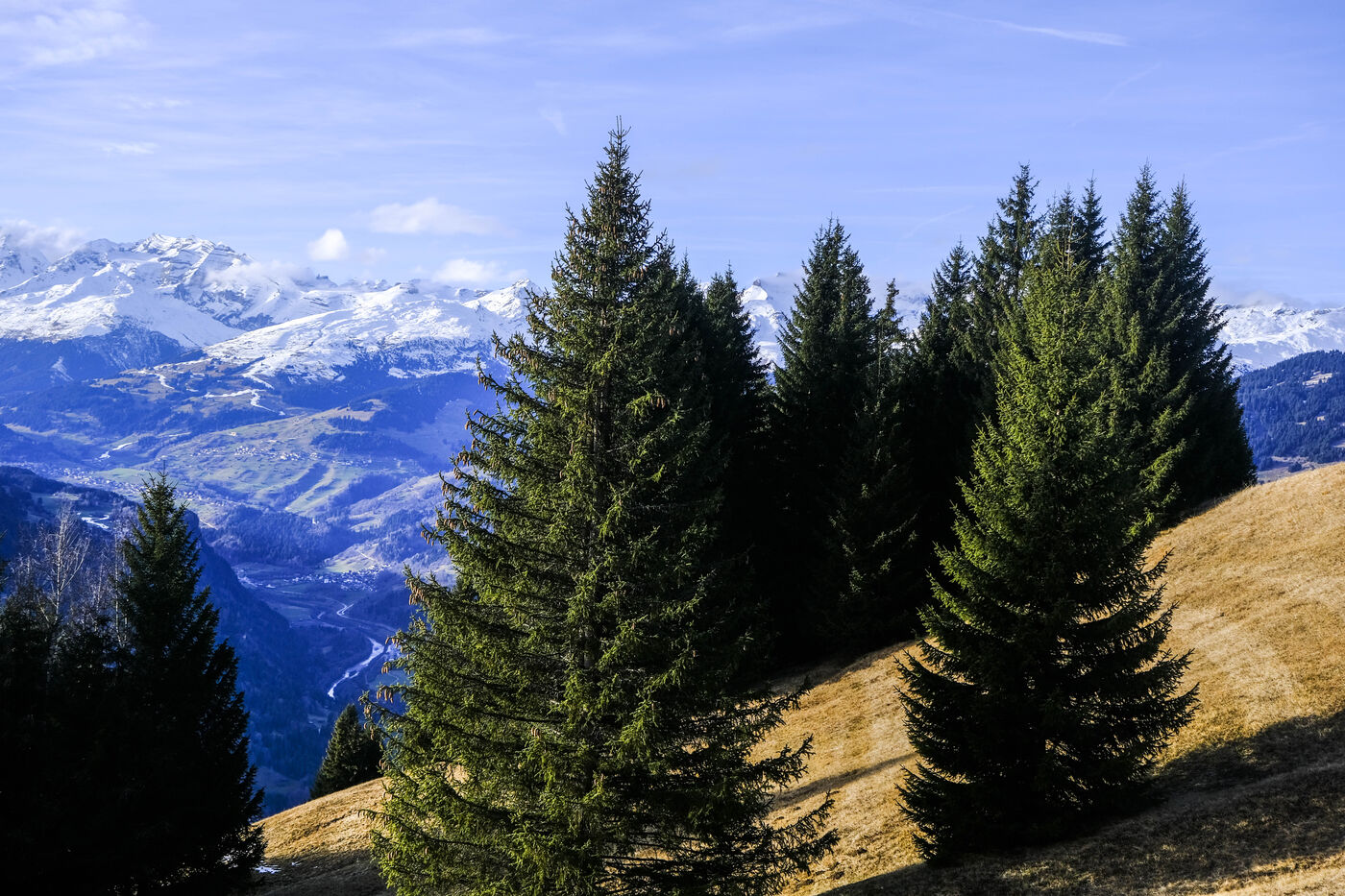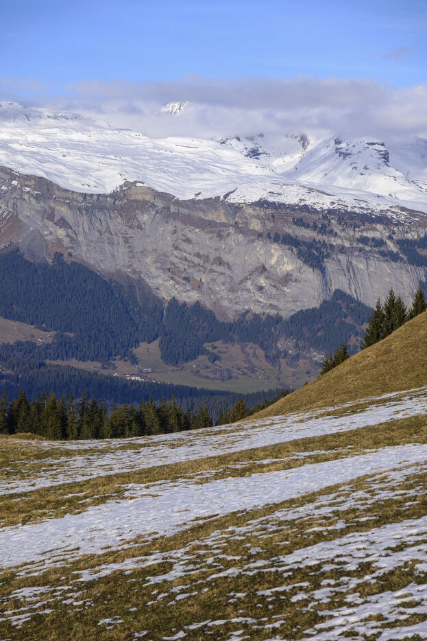 SUISSE ALEMANIQUE. LES GRISONS. Janvier 2023. Illustrations de paysages alpins en hiver. Montagnes, chemins, neige.