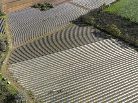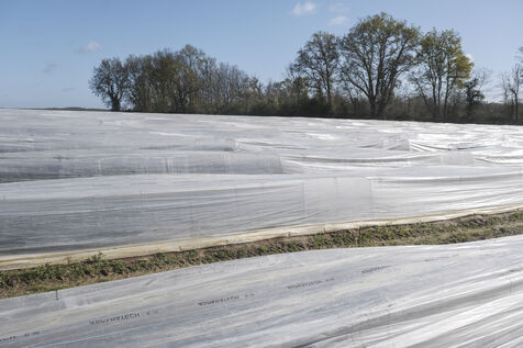 France, Bauge en Anjou, Maine et Loire, 2023-04-13. Asparagus production