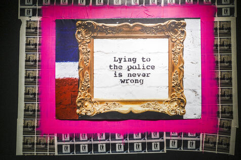 The exposition traces the creative path of global megastar, legendary British graffiti artist Banksy from street art to museum walls. Photographer: Jean-Michel DELAGE/Hans Lucas