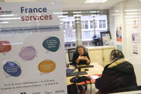 FRANCE, MAYENNE. 06 February 2025. France services is a network of more than 2,700 reception and support centres to help you with your day-to-day administrative tasks. Wherever you live, in town or in the country, the nearest France services centre is no more than 30 minutes away by car. For more than 9 out of 10 French people, the journey takes less than 20 minutes. Photographer: Jean-Michel Delage / Hans Lucas