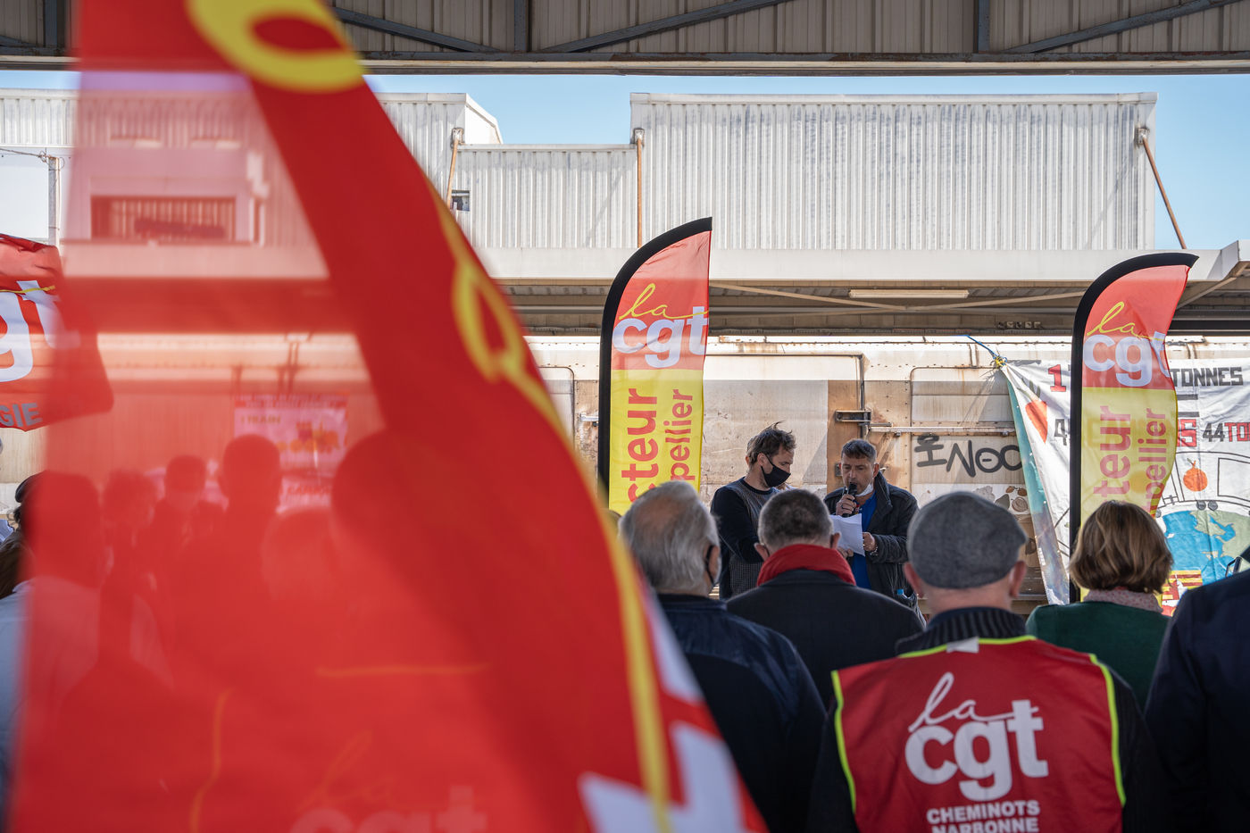 Ce 25 mai 2021, des membres de la CGT et cheminots étaient rassemblés sur un ancien quai de chargement ferroviaire à Perpignan pour demander le retour du Train des Primeurs. Ce train qui transportait des marchandises de Perpignan à Rungis a été stoppé en 2019 et n'est toujours pas rétabli malgré les déclarations du gouvernement. Les militants prônent le retour au transport ferroviaire de manière générale pour des raisons écologiques, économiques et sociales.