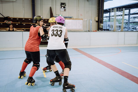 "Mandy Bulls", "Peter la terreur", "Pretty Blueman"... Ce sont les surnoms qu'iels se sont donné·es en arrivant dans ce sport de contact aux valeurs « féministe punk ». Venu des États-Unis et essentiellement féminin, le roller derby est en plein essor depuis une dizaine d'années en France. Au-delà du jeu de coudes et de la course effrénée sur patins à roulettes, c'est un sport très politique où l'inclusivité est une règle d'or.