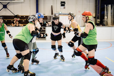 A training session with the Montpellier roller derby team, the DCCLM.