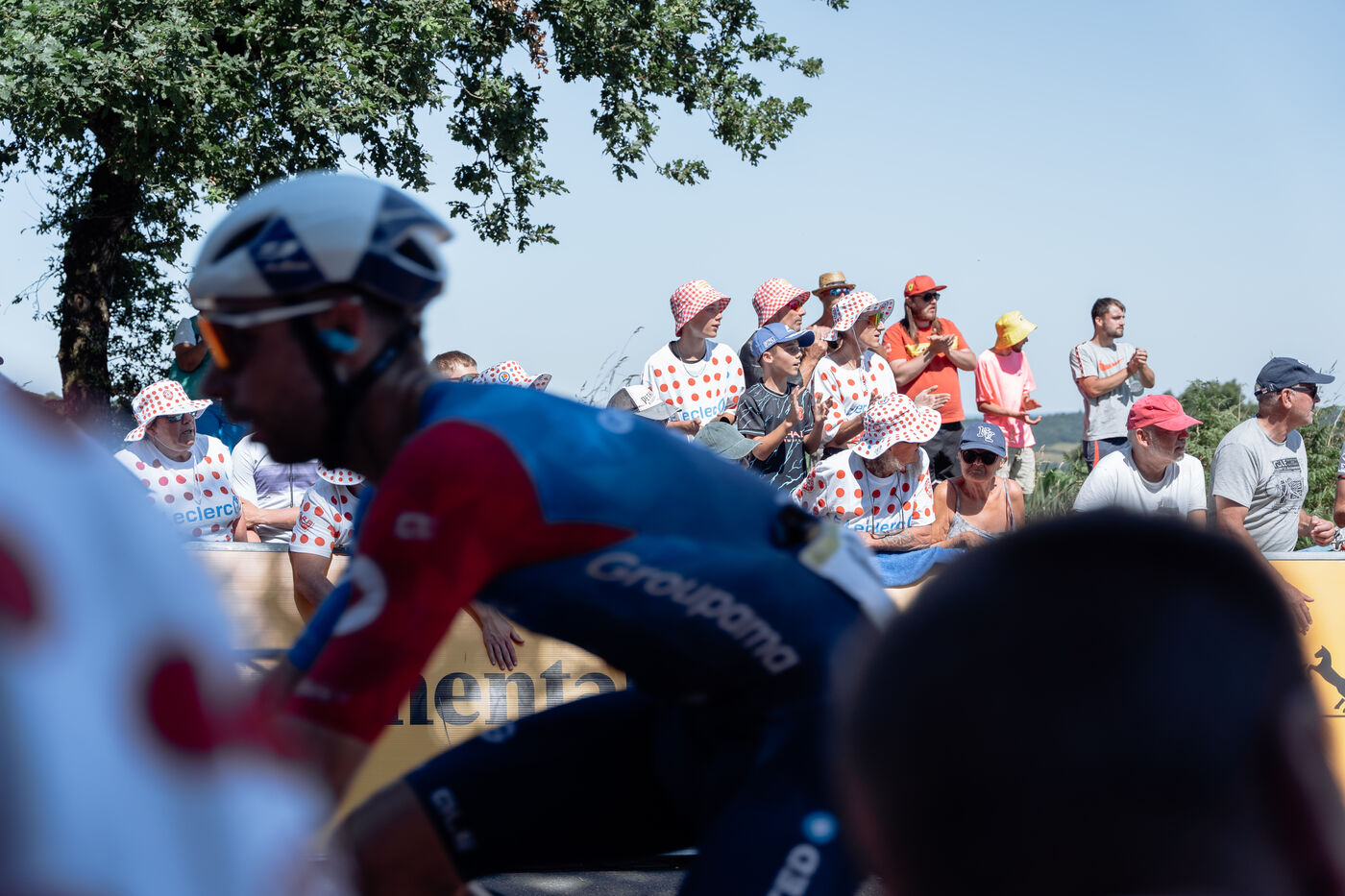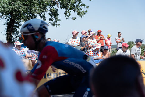 Mur-de-Bretagne in a white jersey with red polka dots