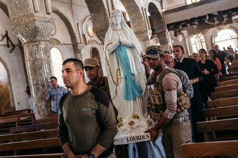 Le temps de la reconstruction a commence mais, parfois, un petit coup de pouce divin est de mise. Le 3 avril 2017, 15 reproductions de Notre-Dame de Lourdes ont ete envoyees en Irak pour remplacer toutes les statues de la vierge Marie detruites par les Islamistes.