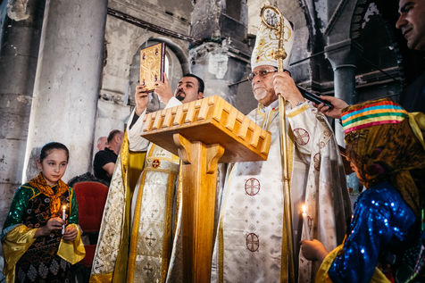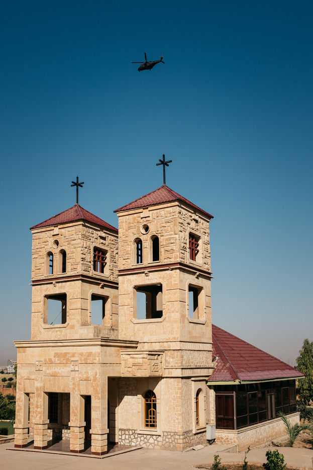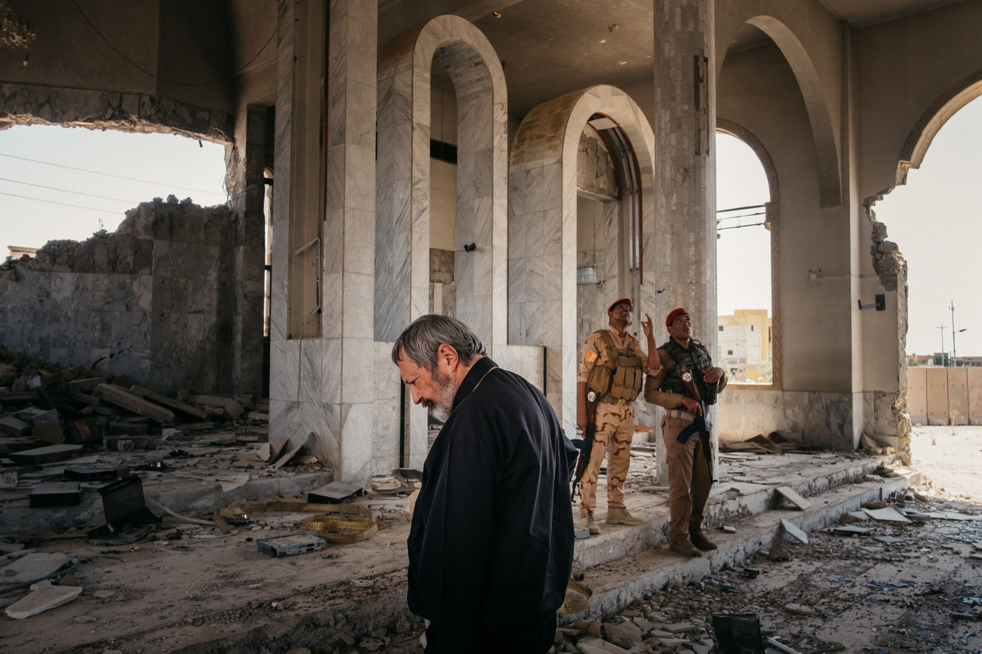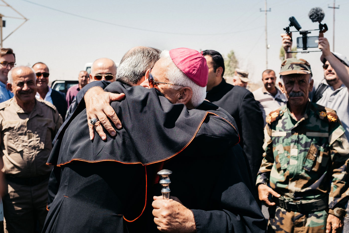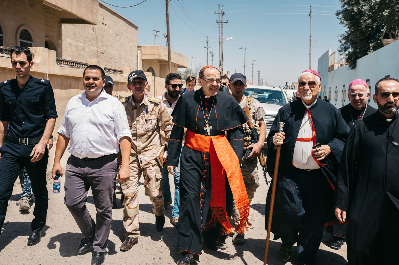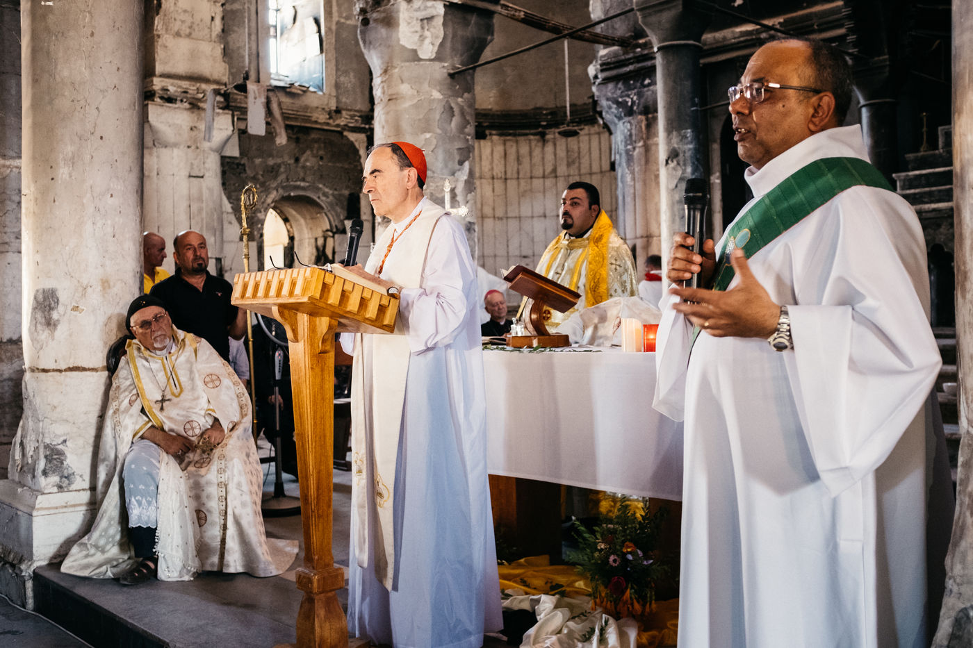 En juillet 2017, quelques jours apres la fin de la bataille de Mossoul, Mgr BARBARIN, alors archeveque de Lyon se rend dans la plaine de Ninive et notamment a Mossoul, conformement a la promesse faite a Mgr Petros MOUCHE archeveque syriaque catholique de Mossoul quelques annees plus tot.