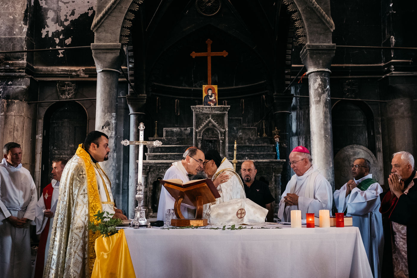 In July 2017, a few days after the end of the battle of Mosul, Archbishop BARBARIN, then Archbishop of Lyon, went to the Nineveh plain and in particular to Mosul, in accordance with the promise made to Archbishop Petros MOUCHE, Syriac Catholic Archbishop of Mosul, a few years earlier.