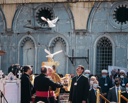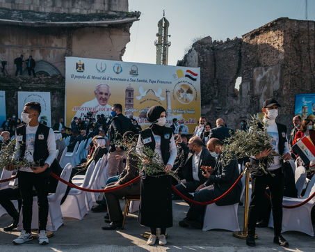 March 7, 2021: In the heart of old Mosul, particularly bruised by the war against the Islamic State, Pope Francis held a speech of peace and fraternity in front of an assembly of Mosul Christians and Sunni Muslims and a large security force.