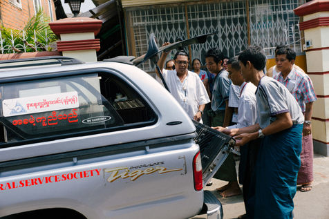 Kyaw Thu, ancienne star de cinéma birman a décidé d'utiliser sa célébrité pour pallier les manques de l'Etat birman en termes de santé et de prise en charge sociale. Il y a près de 14 ans il fonde la Free Funeral Service Society (FFSS) association qui permet aujourd'hui de prendre en charge les funérailles des Birmans les plus pauvres du township de Dagon Nord, en banlieue de Yangon a raison de 30 à 40 funérailles par jour.