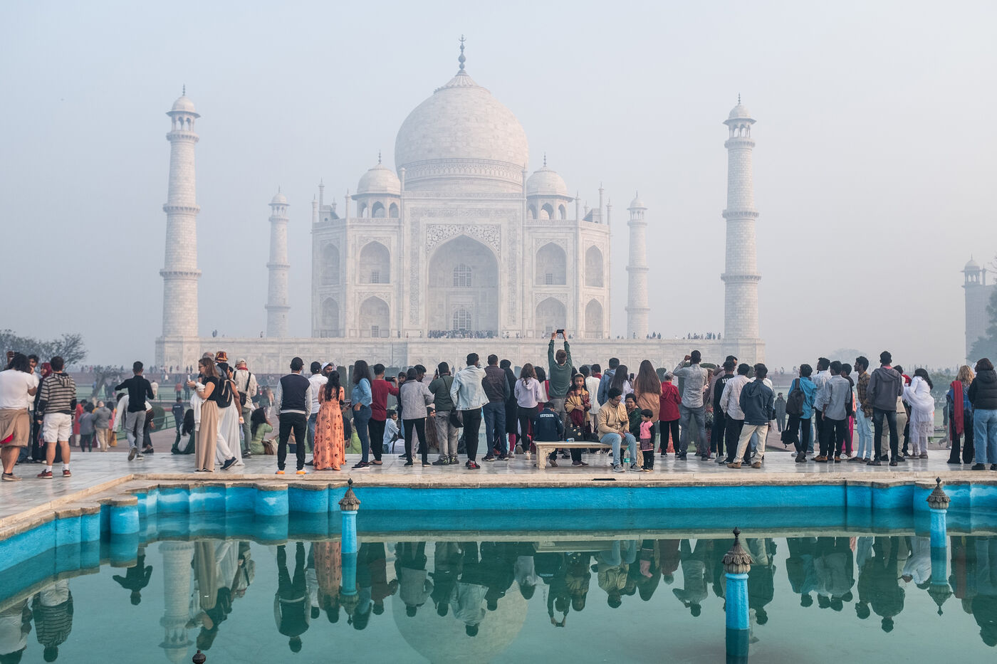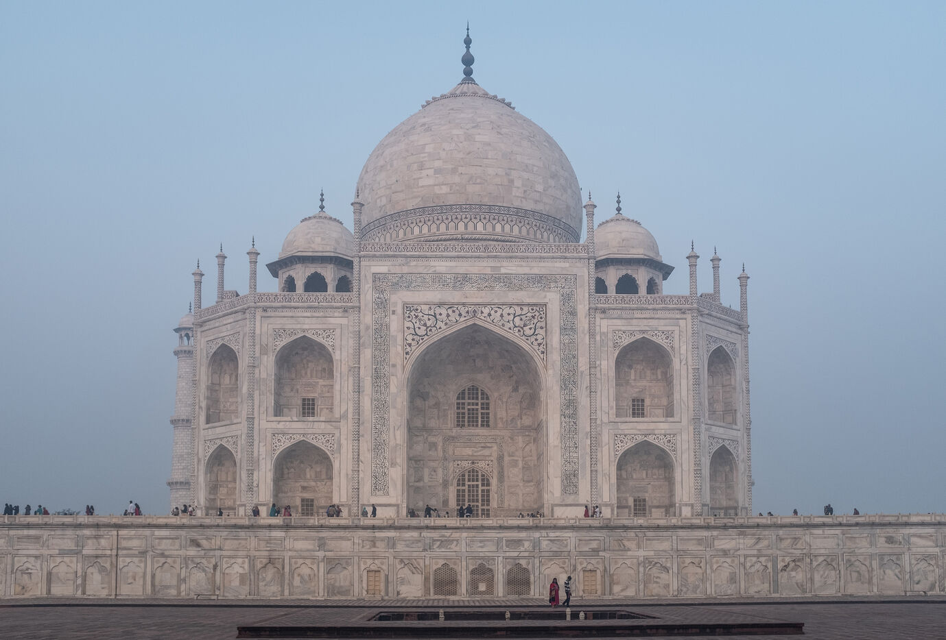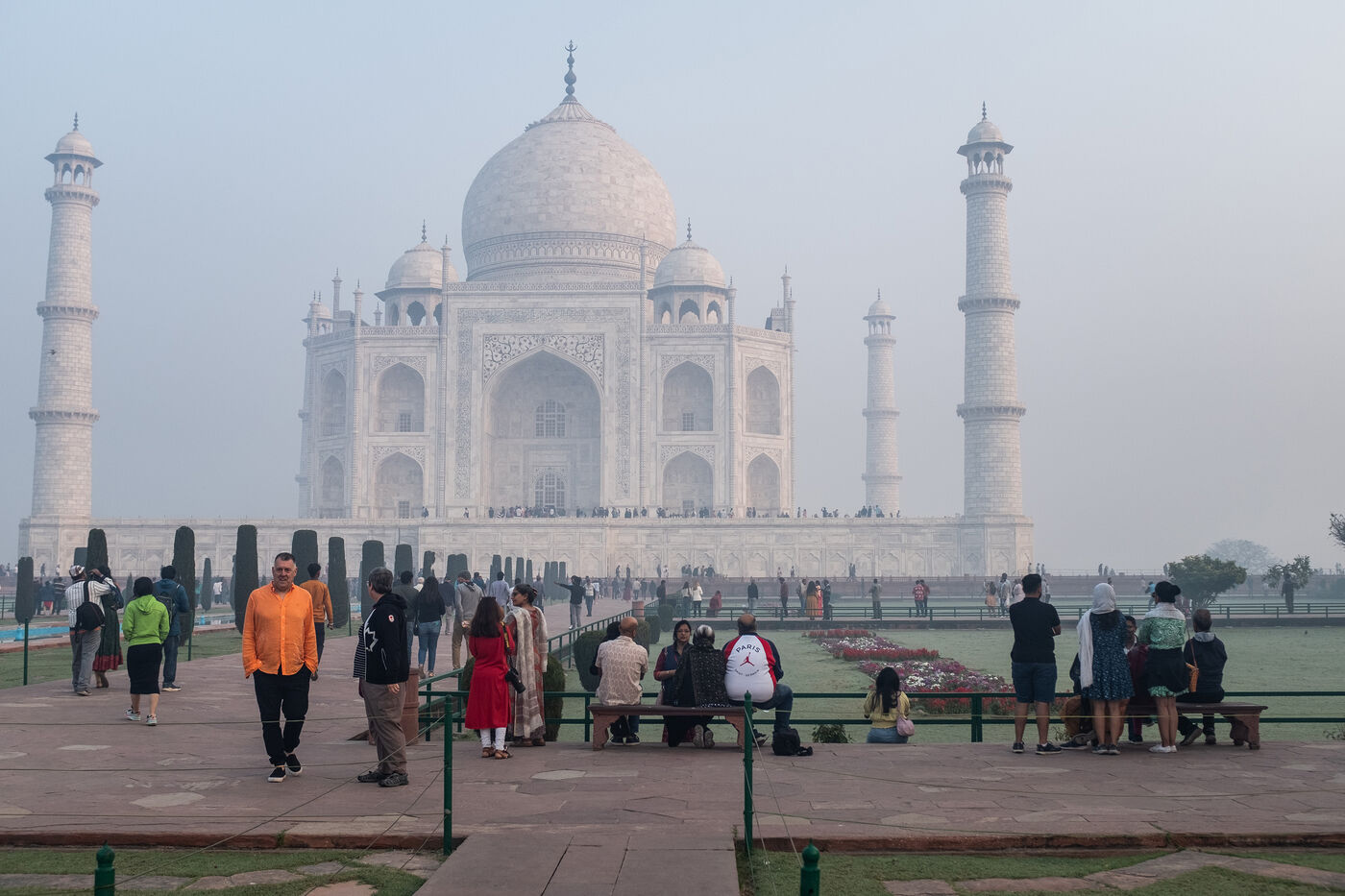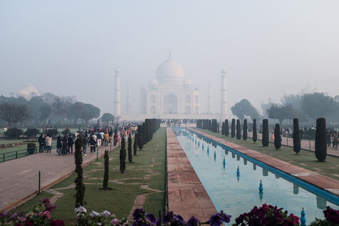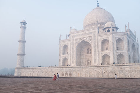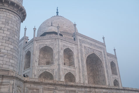 Sa construction commence en 1632, mais la date exacte de la fin des travaux demeure incertaine. Selon le chroniqueur officiel de Shâh Jahân, Abdul Hamid Lahori, le Taj Mahal est achevé à la fin de 1643 ou au début de 1644. Mais une inscription dans l'entrée principale indique que la construction s'est achevée en 1648. L'État de l'Uttar Pradesh, qui a célébré officiellement le 350e anniversaire de l'édifice en 2004, affirme quant à lui que les travaux se sont achevés en 1654. Le chercheur Andrew Petersen, lui, mentionne prudemment que « les travaux ont duré plus de vingt ans ».