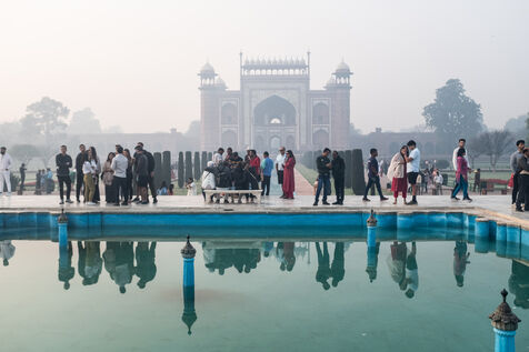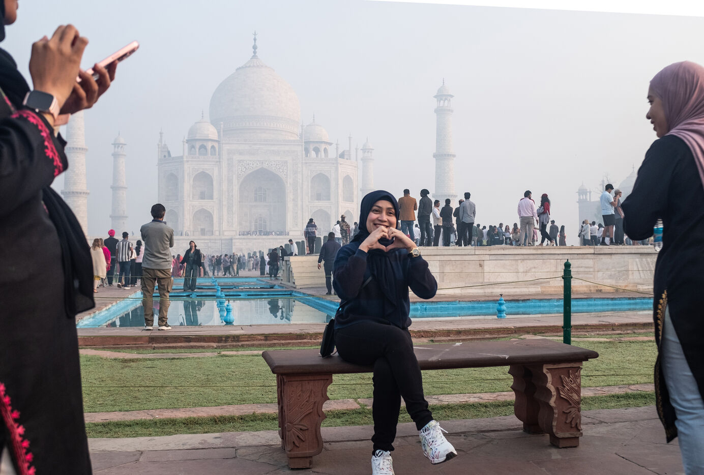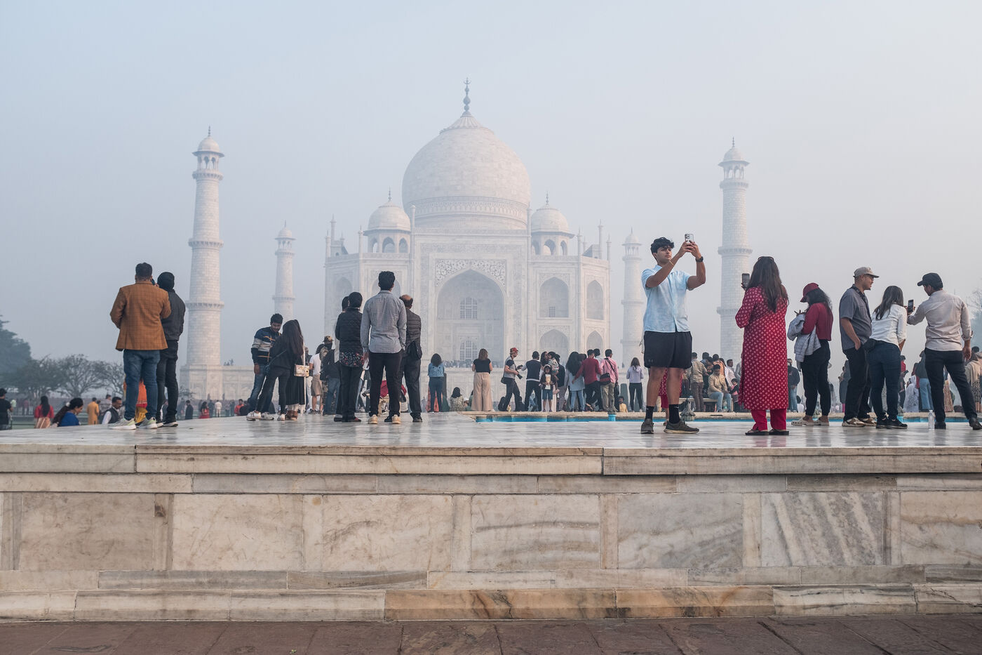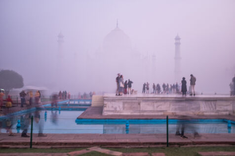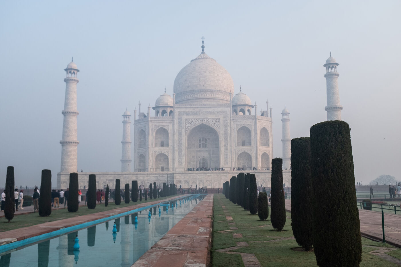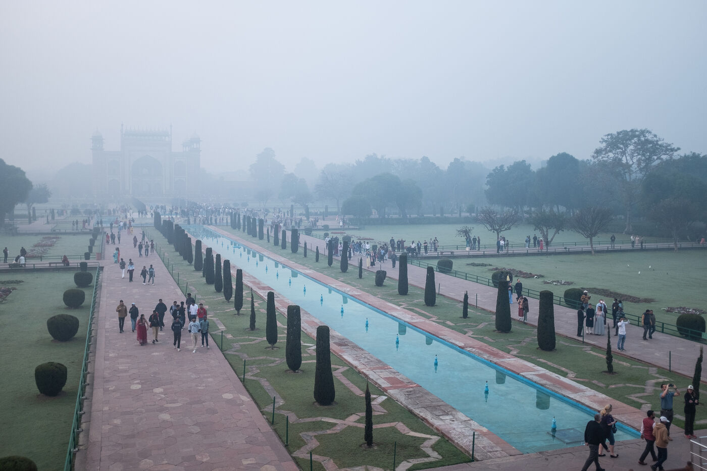 Sa construction commence en 1632, mais la date exacte de la fin des travaux demeure incertaine. Selon le chroniqueur officiel de Shâh Jahân, Abdul Hamid Lahori, le Taj Mahal est achevé à la fin de 1643 ou au début de 1644. Mais une inscription dans l'entrée principale indique que la construction s'est achevée en 1648. L'État de l'Uttar Pradesh, qui a célébré officiellement le 350e anniversaire de l'édifice en 2004, affirme quant à lui que les travaux se sont achevés en 1654. Le chercheur Andrew Petersen, lui, mentionne prudemment que « les travaux ont duré plus de vingt ans ».