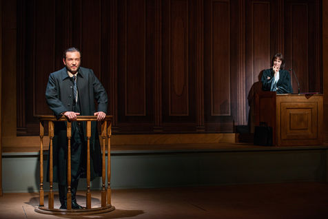 HORS LA LOI, texte et mise en scène de Pauline Bureau, scénographie d'Emmanuelle Roy au Vieux Colombier de la Comédie-Française, du 24 mai au 7 juillet 2019, avec Claire de La Rüe du Can, Coraly Zahonero, Françoise Gillard, Martine Chevallier, Martine Chevallier, Sarah Brannens, Daniele Lebrun, Laurent Natrella et Alexandre Pavloff.
