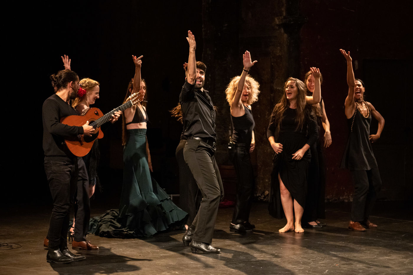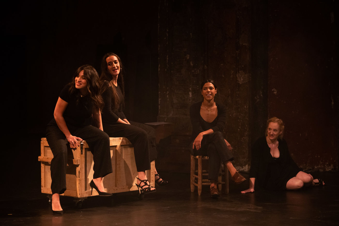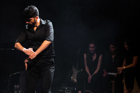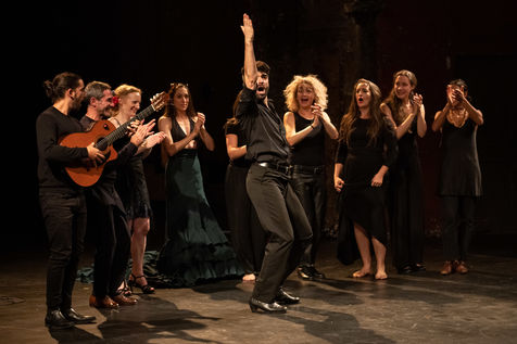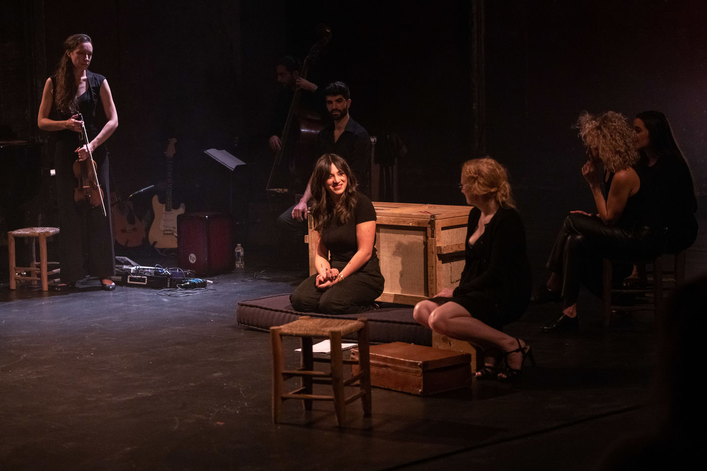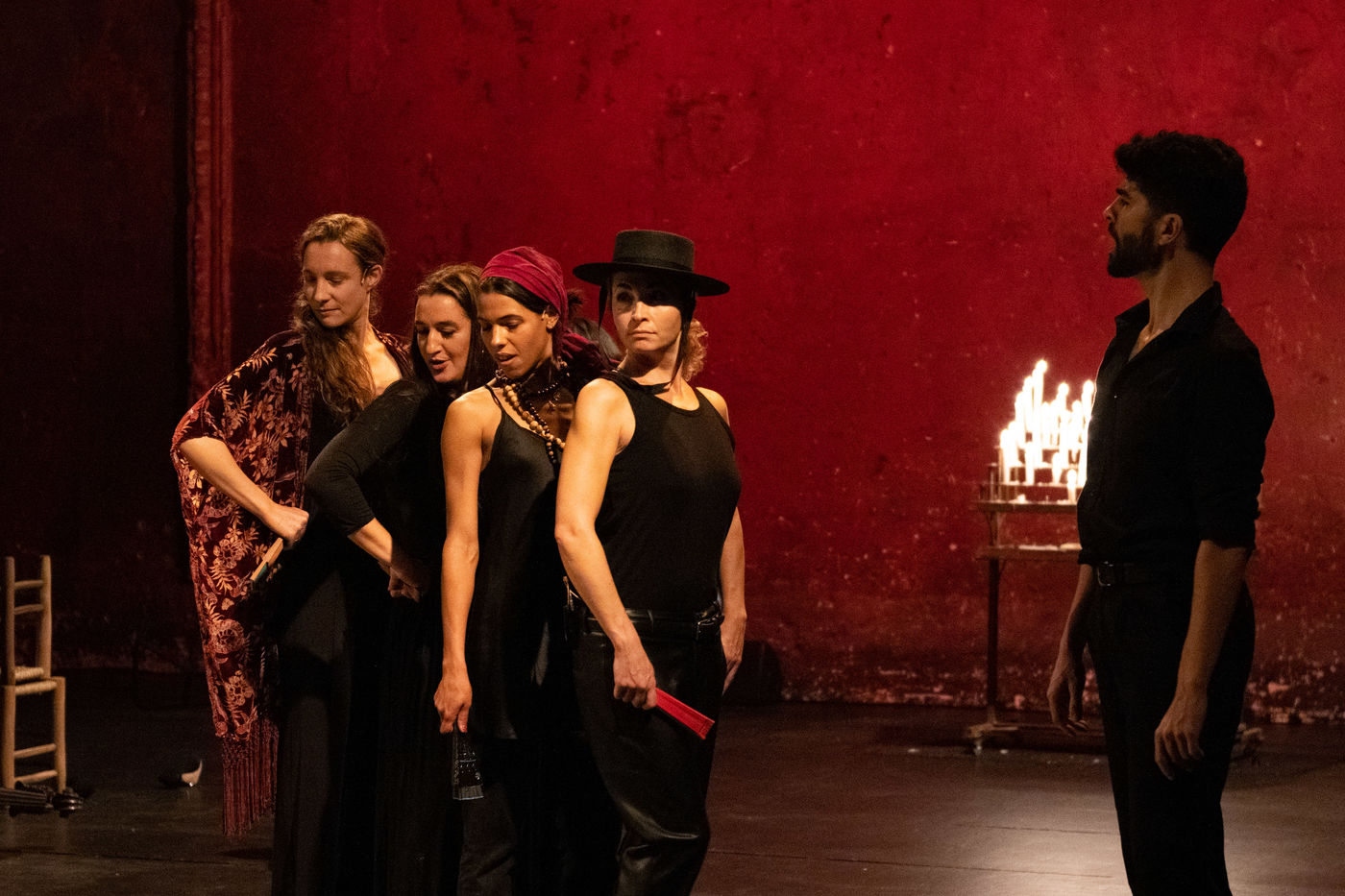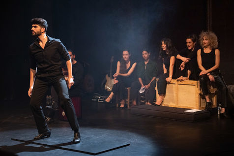France, Paris, 2020-10-25. Andando, piece de theatre, mise en scene par Daniel San Pedro aux Bouffes du Nord. Avec Aymeline Alix, Audrey Bonnet, Zita Hanrot, Camélia Jordana, Estelle Meyer, Johanna Nizard, Liv Heym, Pascal Sangla et M hamed el Menjra.