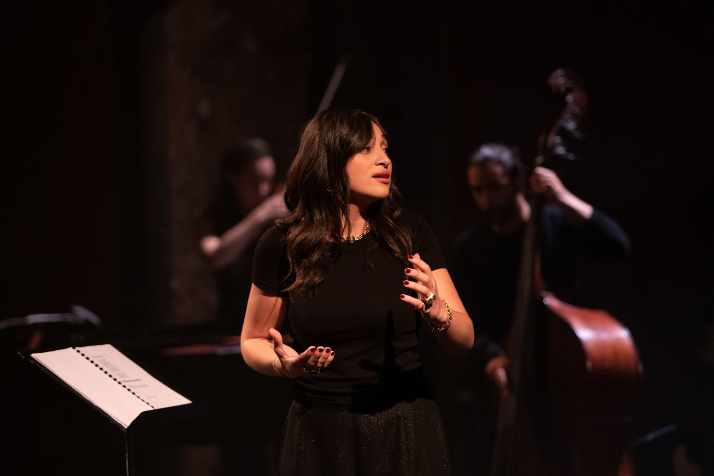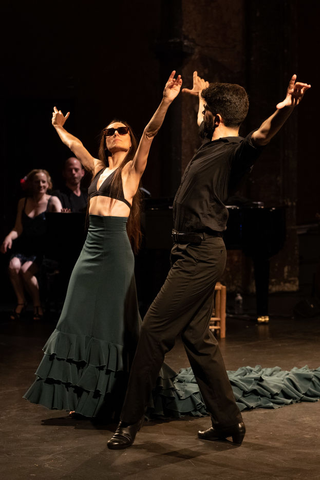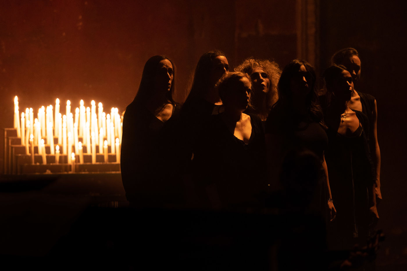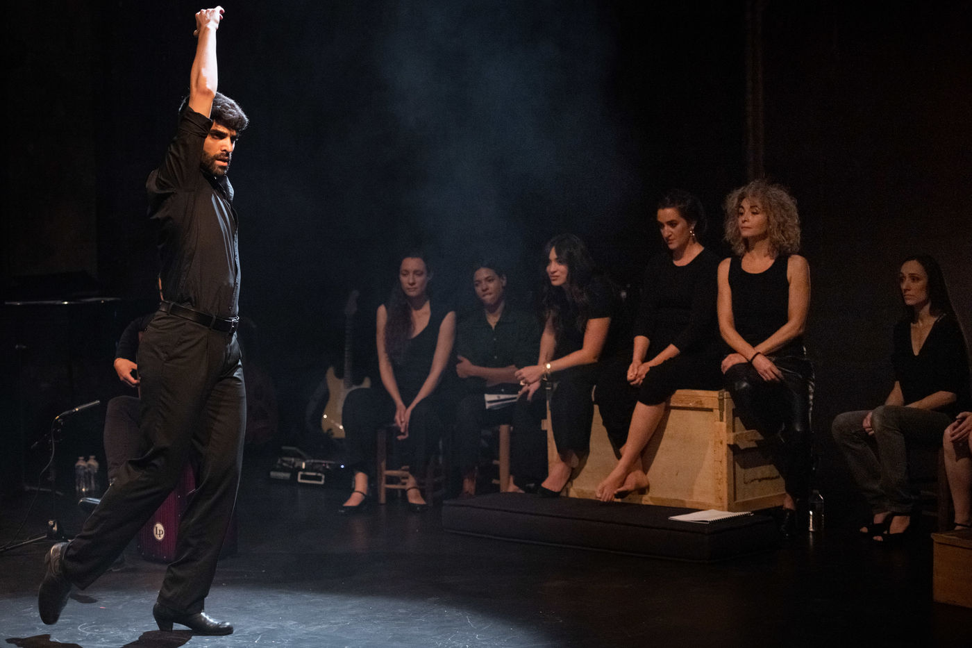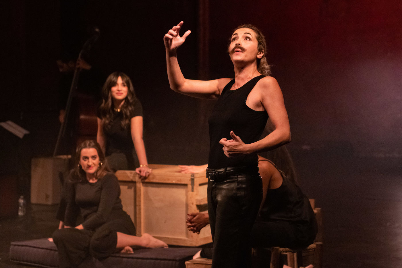 France, Paris, 2020-10-25. Andando, piece de theatre, mise en scene par Daniel San Pedro aux Bouffes du Nord. Avec Aymeline Alix, Audrey Bonnet, Zita Hanrot, Camélia Jordana, Estelle Meyer, Johanna Nizard, Liv Heym, Pascal Sangla et M hamed el Menjra.