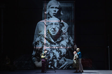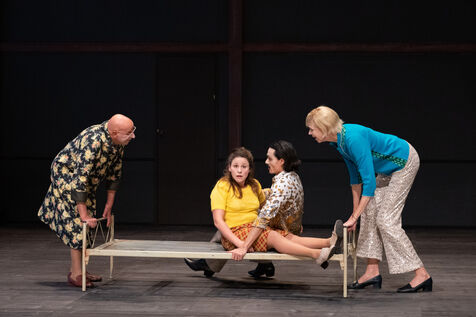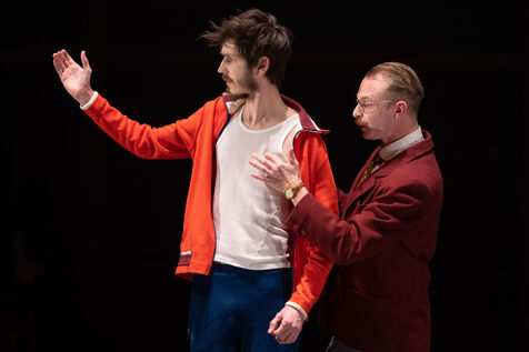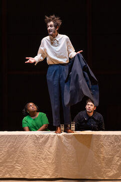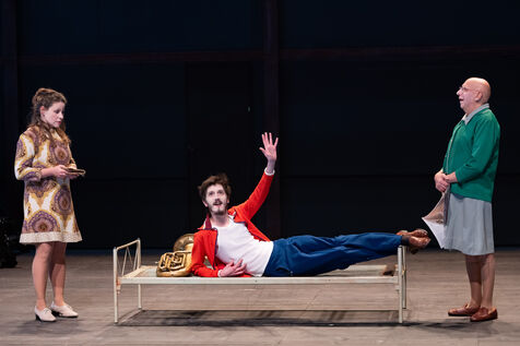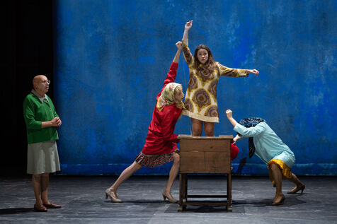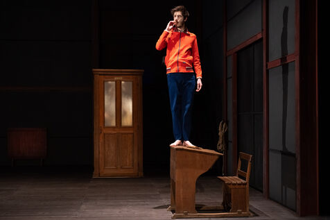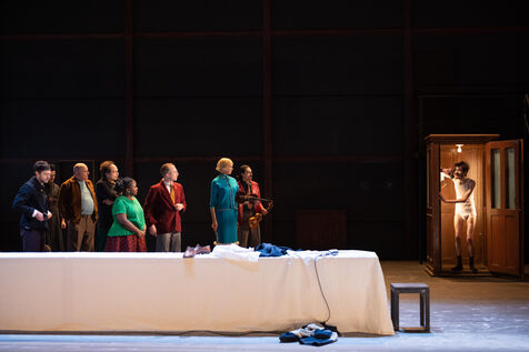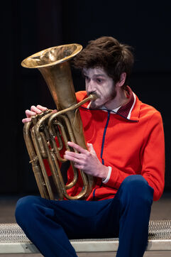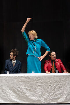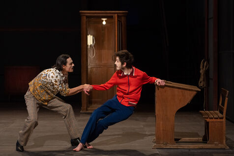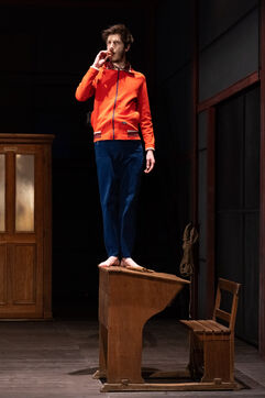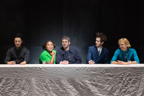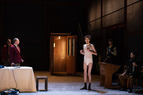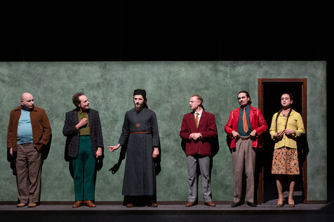 TEATER - LE SUICIDÉ, VAUDEVILLE SAUVIÉTIQUE of Nicolaï Erdman directed by Jean Bellorini, at the Theatre National Populaire, december 2022. With François Deblock, Mathieu Delmonté, Clément Durand, Anke Engelsmann, Gérôme Ferchaud, Julien Gaspar-Oliveri, Jacques Hadjaje, Clara Mayer, Liza Alegria Ndikita, Marc Plas, Antoine Raffalli, Matthieu Tune, Damien Zanoly and Tatiana Frolova.